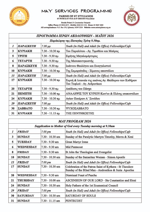 Fr Constantine Varipatis(can be contacted on 0418 511 212)